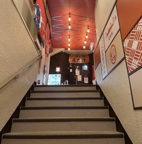JR高架下の階段を上り2階に行くと突き当りは『堀こたつ個室』のうたげになります!